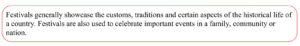 Based on the information in the passage, which conclusion can be drawn about the importance of festivals? Festivals are _____.
