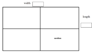 The playground will include a rectangular sandbox in one corner and a triangular grassy area in the other corner. The total playground space is a rectangle with a length of 25 meters and a width of 18 meters.
